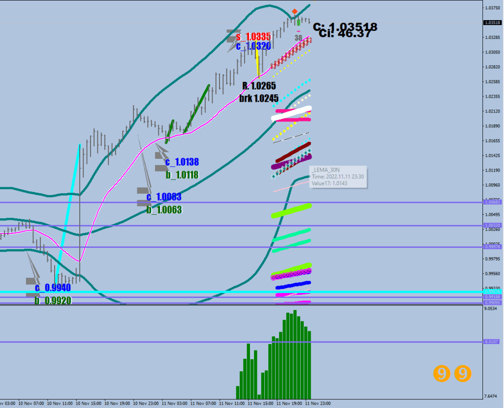 What could provide support at least for a bounce is the 3x stretch on the way down @ 1.0143 instead before a leg up in combination with the E-21 at 1.01+. With a short I would target the hourly 30-sample BB low (& trail). This may come together with the upper guard rail somewhere above 1.006. I would not have hopes beyond these numbers on the downside currently.