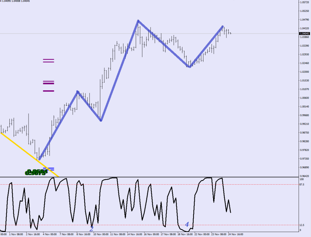 After a prolonged Wave4 down, a Wave5 corrective up, swimming against momentum with a driven thrust.