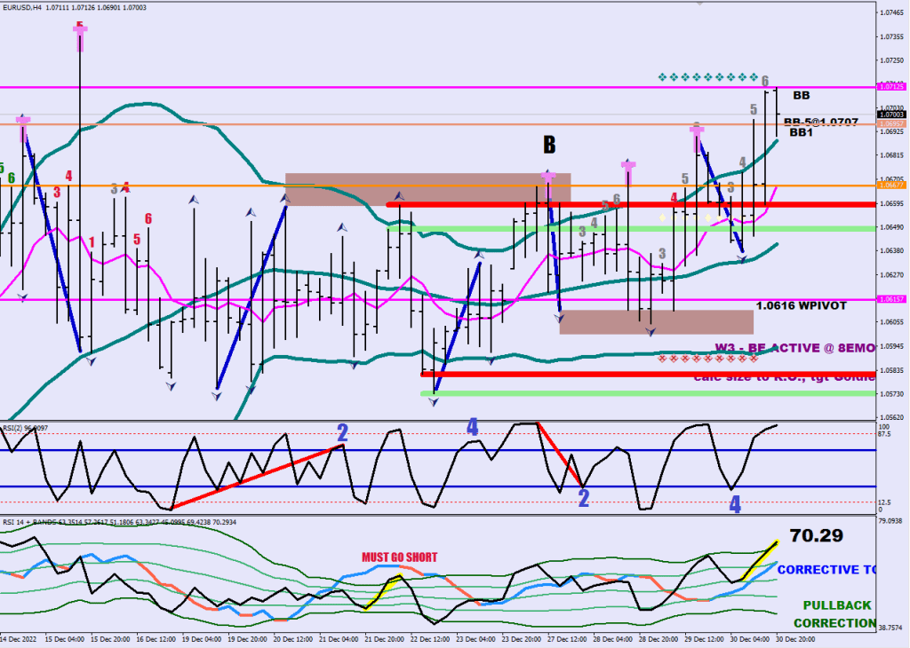 Then the Wave 2’s ending had to be adjusted a number of times.The first red line represents an RSI2 peak that was exceeded by the end of Wave 4. That full lambda move in between was an anomaly. It went into the dirt box of the Wave 2 by 0.8 pips.