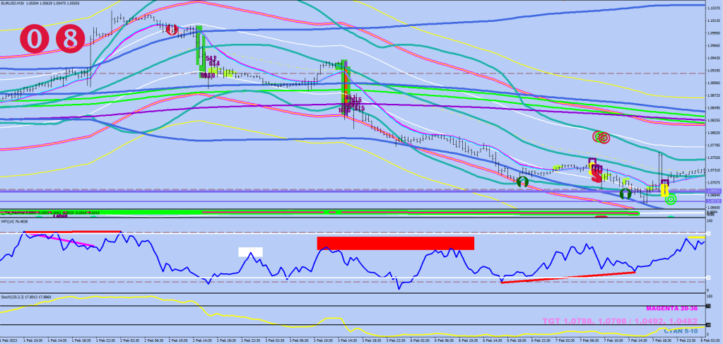 After the Euro peak was mode, the first money flow rebound I marked up in white. I did not quite know what to do with it at the time. I did notice that when money flow had exceeded this reading, that was a perfect continuation entry (red block).