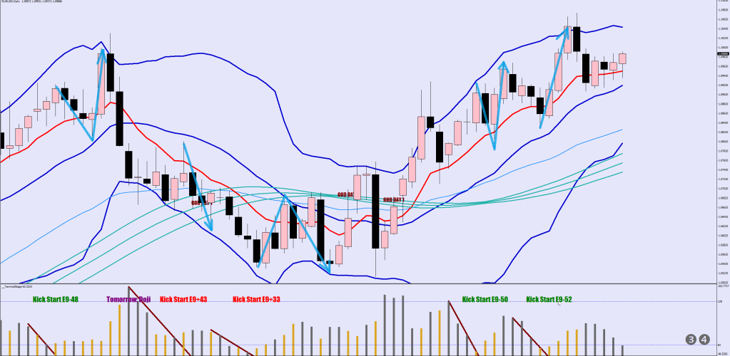 A golden prompt (if the logic still stands, since the 4th canle back was a close above the E9) would call for a buy again at a new low below 1.0910 (just below the S20) for another run for the upper Bollinger.