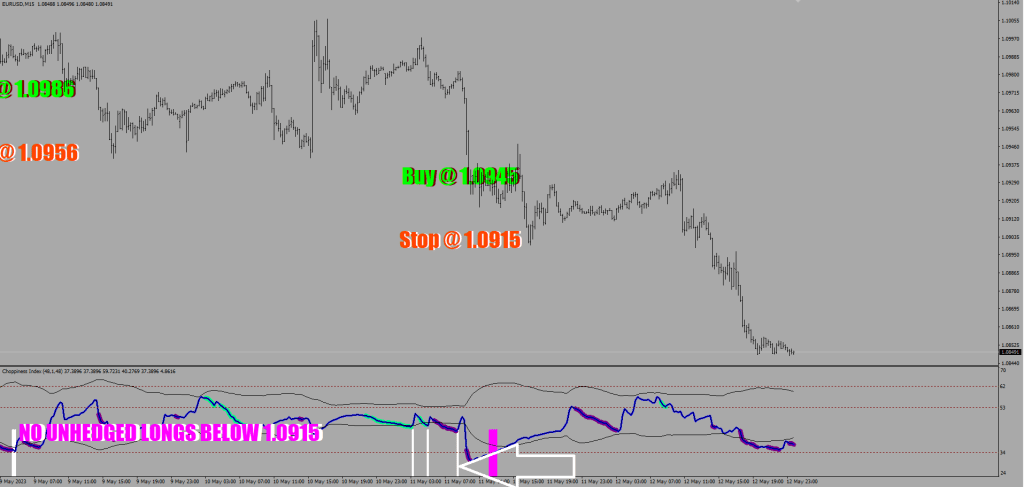 The White arrow shows the last White Rabbit. A Rabbit is a 30-pip range, where price may turn around. When the stop is surpassed, the Rabbit is broken. Hedging is a must.