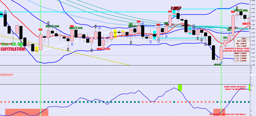 My definition of a capitulation currently is starting out with a non CAP print: a daily candle that closes outside the 19-sample bollinger and the 44 sample EMA (HL2), but does not settle back from its end more than 27 pips.