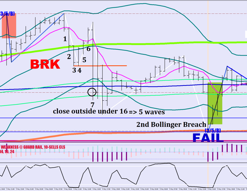 If price makes it outside the Bollinger (measured from a terminal point, not just any leg) within 16 hours, there would be 5 legs (at least).