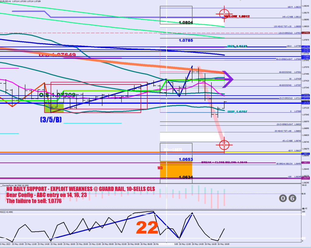 A mean reversion was held back again at the Lower Guard rail (in Coral), but the sell off ensued resulted in a slight beat and only 4 hours of consecutive selling versus the previous theme of 10 hours or 9+9 hours.