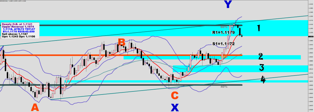 When I said that the mean reversion’s targets are the Upper Guard rail, the 20-40 pips area below the Green River, I used an indicator, displacements and statistical, instrument dependent knowledge.
