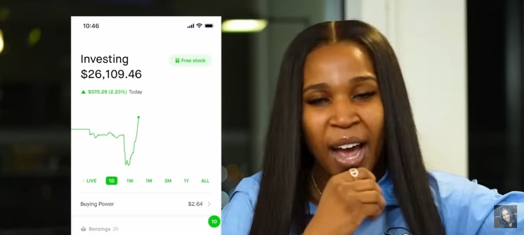 With that tumbnail image and a random snapshot of a 26k Robin Hood account with a daily gain of $570 (2.23%) from somewhere are meant to be the definite proofs for her claim of making 6.5 million in 2 years starting with a negative balance.
