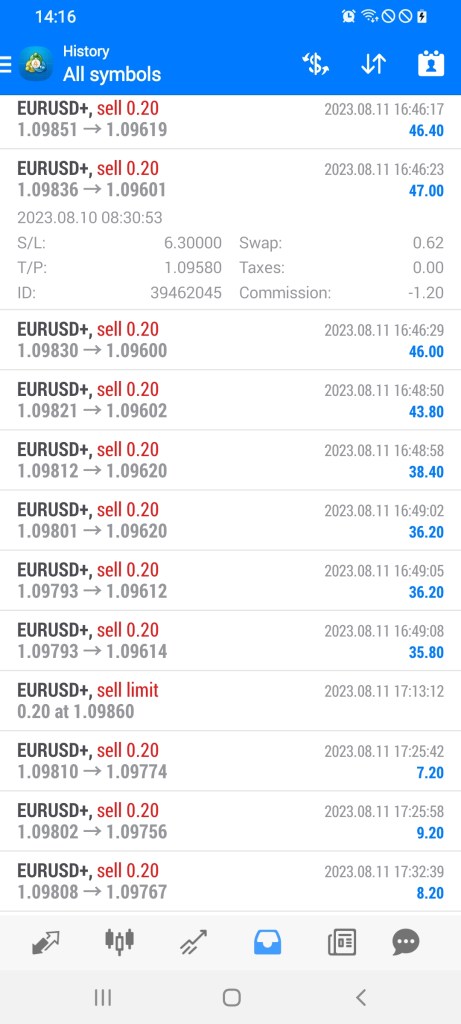 These orders were auto targeted to the 60-min 30 sample BB @ 1.0958 at the given hour, but I just could not wait it out & closed them a few pips shy. The 6.3 stop loss is the code that adjusts the target real time if my EA is running.