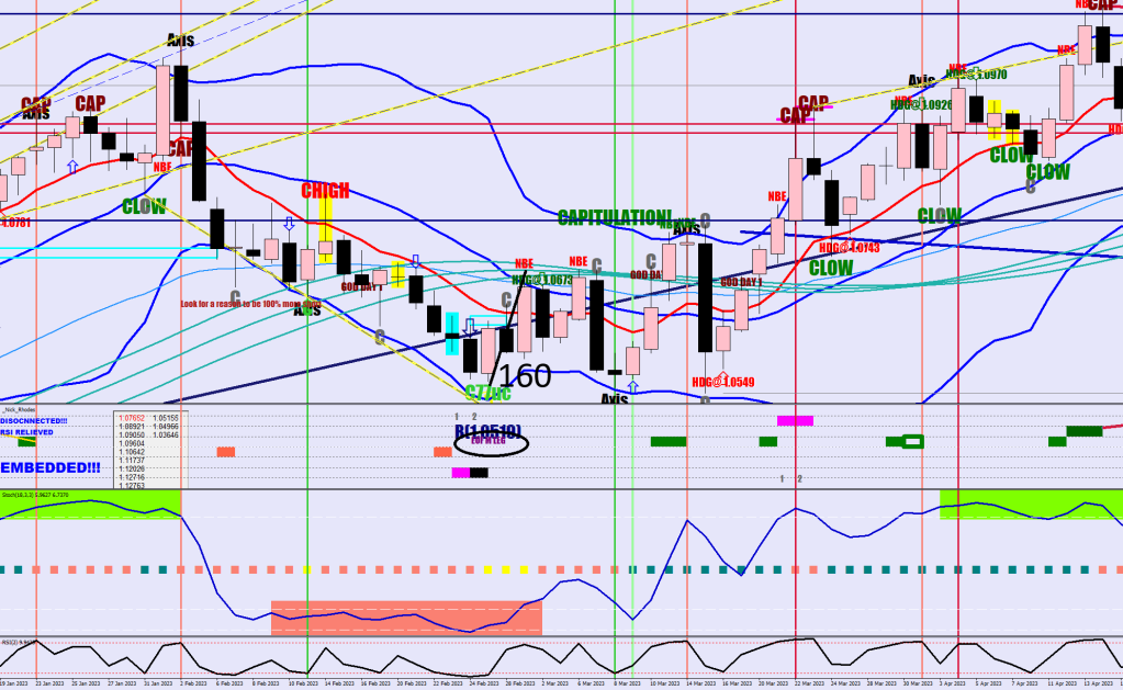 There was a lower low made for a black Nick Rhodes print, a close up and a 160-pip rally before the Beat was made. In fact this round trip was made twice with the second rally (the volatility whip’s V leg) touching the upper BB.