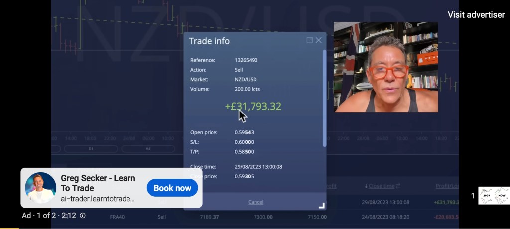 I will make a snapshot of the claimed 200k demo profit on Cable when I see it next, in particular because the numbers don’t add up either. With 200 lots you would need 100 pips, not 32.