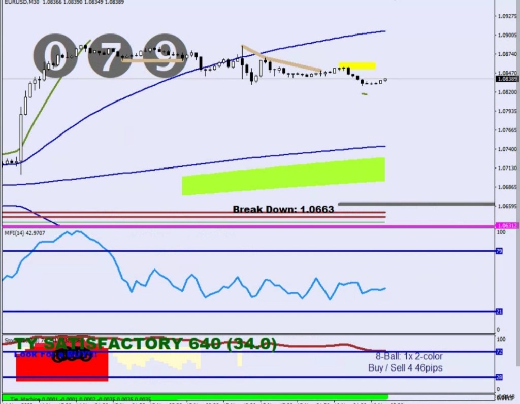 The green shaded area is between the E-414 lows and the E-712 medians. The spread is now 34.9 and anything above 27 is too wide to simply slip through. Scale in with longs in this area and do not expect price to make it all the way, it may fall short by say 10 pips. 30 minute chart.
