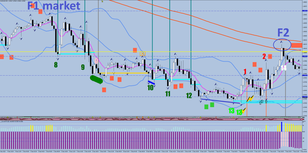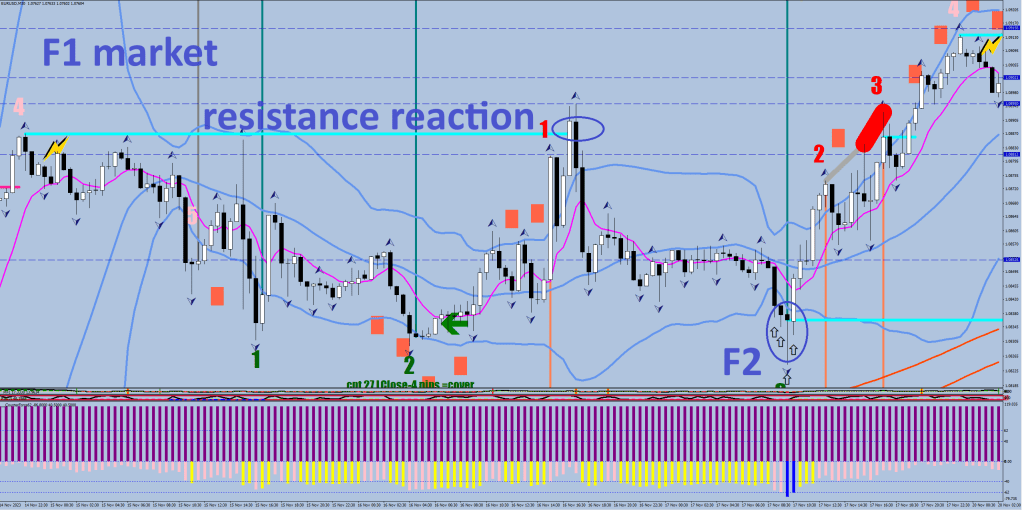 An F1 market would react to support / resistance, but proceed after an F2 print.