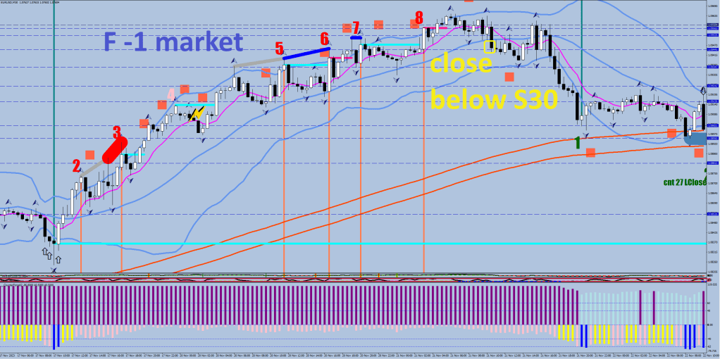 An F-1 market ends in a reversal brought on by a close on the other side of the S-30.