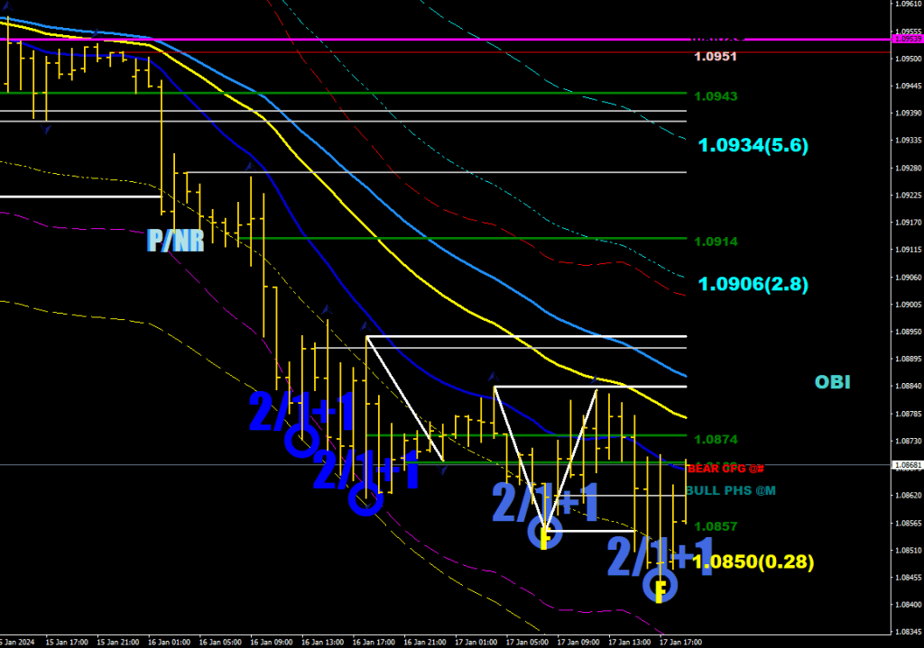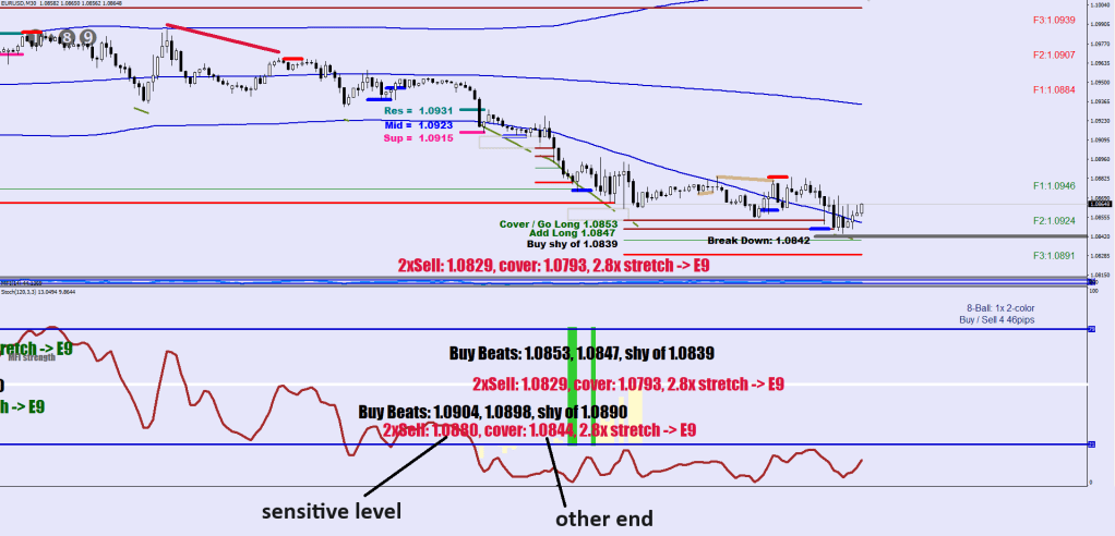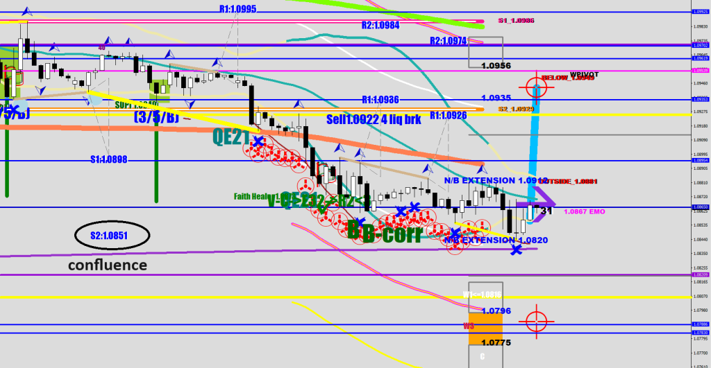 2 full discharges made, the logical return would be an F2 pullback, 62+ pips up from the low. 1.0844+.0062 = 1.0906