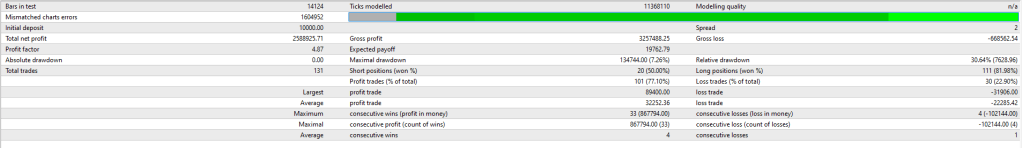 I carried over the at market open, the size boost, but now I’m down to maximum 1 open position per side, ditched all the daily filters and have only a 3 day ATR for a hold back, the short / long opening triggers are for once symmetrical, consolidation/fractal energy based and thus almost everything is different from the Municipal Trader.
