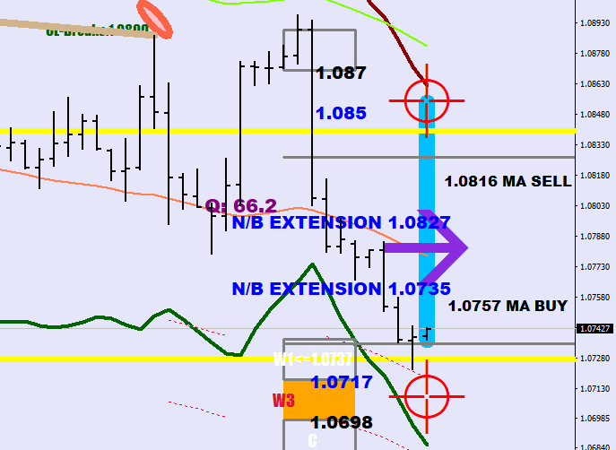 Briefly you could see a print between 1.07 and 1.069. This would certainly be at the required 2.8x flucuation maximum stretch from the mean to finish off Wave 1 down.