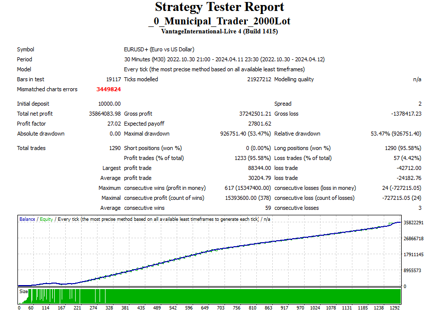 My Municipal Trader / Longs Only run from 10/22 to today with allowance up to 2000 lots: