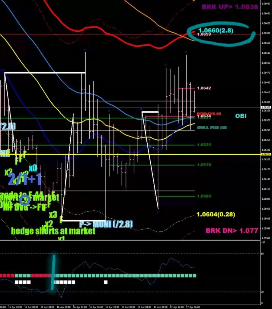 The S-356 is going to be at 1.0750 soon. A left shoulder could print in its neighbourhood (the thick part of the brown) and two more tries could follow with a dip in between that would miss the lower Safety line by 5-10 pips.