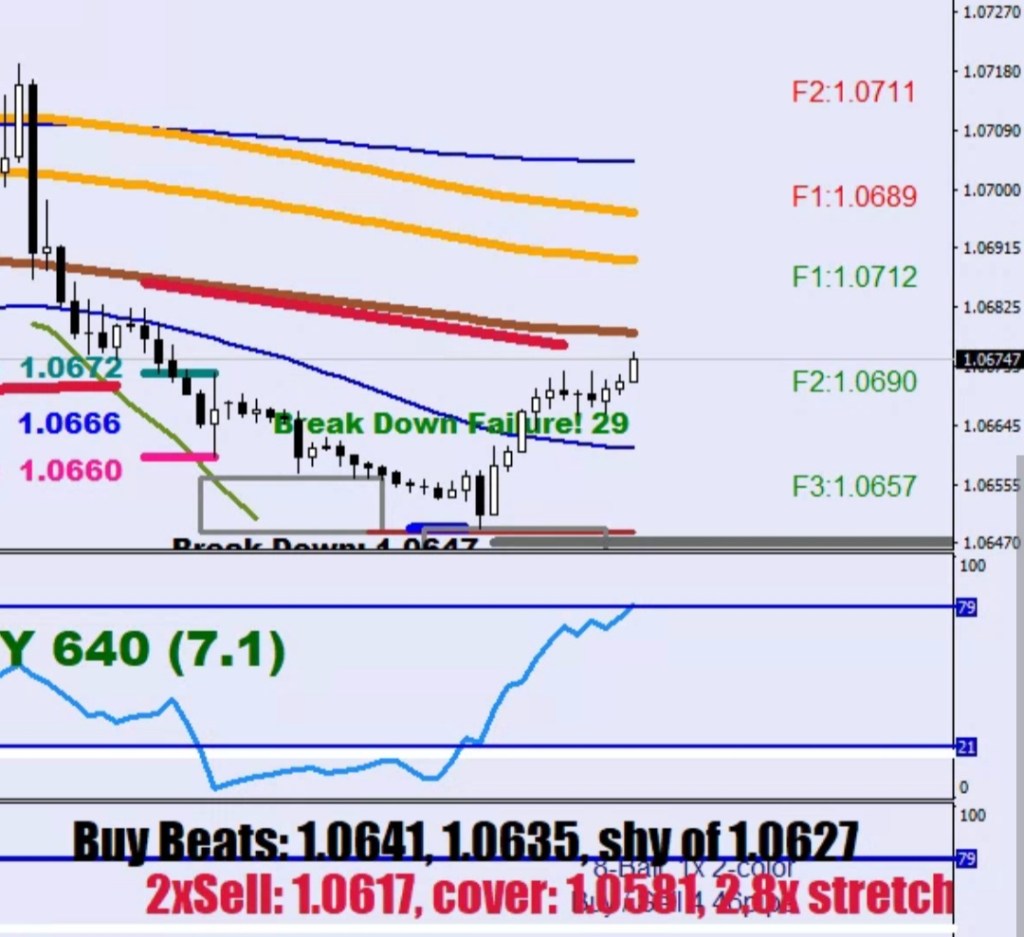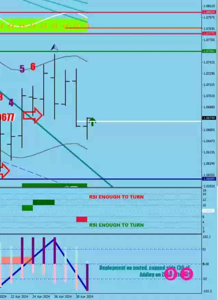What’s the damage? Keeping track of the zigzag on the daily it was clear that purple bars were needed next which meant a minimum move to 1.0753-93 pips = 1.0660.