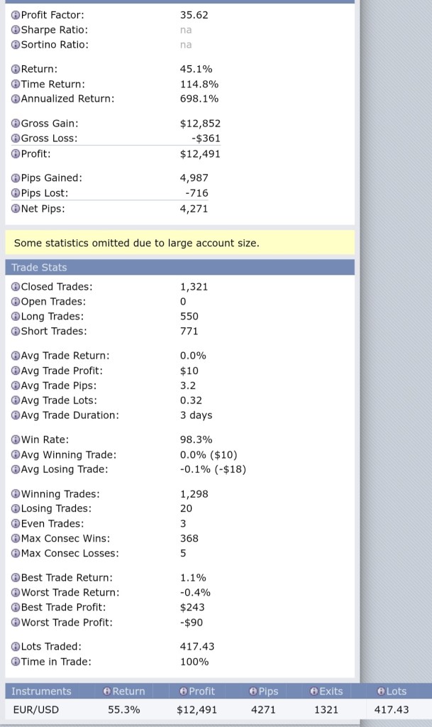 He had his best month ever, running different strategies on multiple instruments. I have merely started my hybrid trading on Eur/Usd.