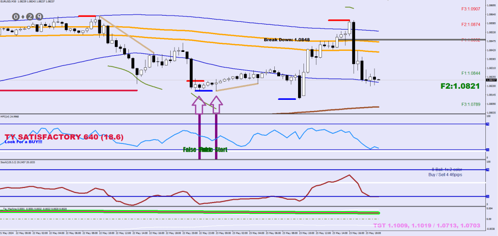 I was explaining this in the morning real-time to a coworker: the candles weren’t rushing away from the False Start low (Stochastic precedes the Money Flow – it’s the wrong way around) and so I was expecting a lower low still to grab some extra liquidity.