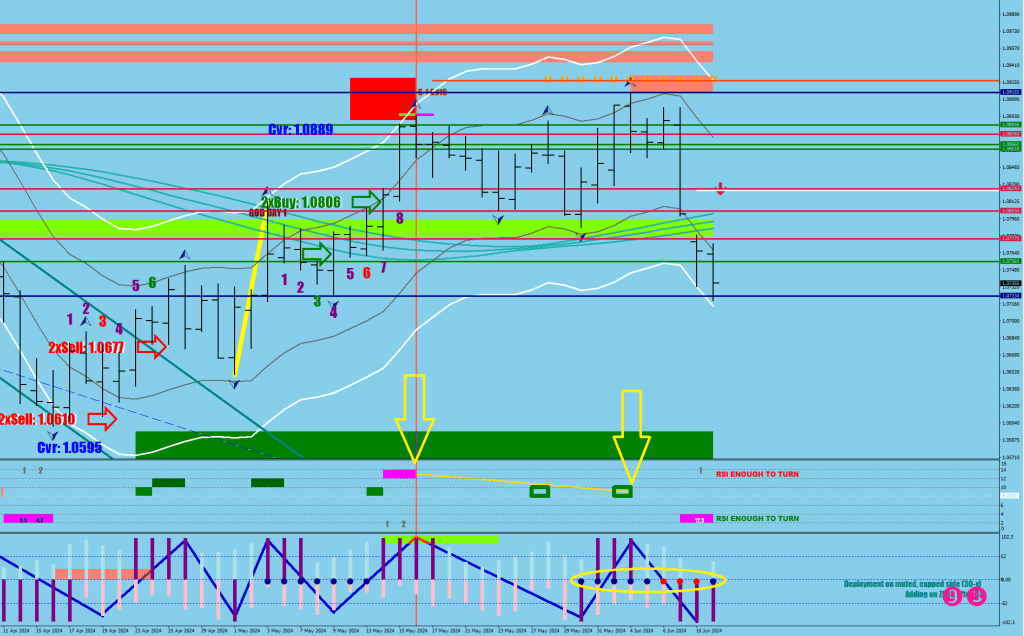 What does a Gray divergence mean? A counter move excess of 88 pips. This would put the price back above 1.0808 briefly. A low would be in, but not THE LOW. The 4-H empty powder box speaks of the same thing. To be a shaded box, the bumper line has to be exceeded (at 1.05 currently).