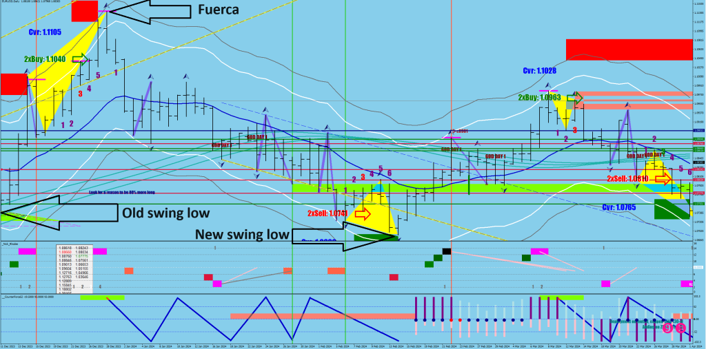 Of course, in the above picture, the bottom triangle showed force, and it should have made a new higher swing high – it can be overruled down the line by a no-strength unassuming turn (the embedding gets put off and the sequence goes as magenta RSI2, embedding, a new fractal with a strong RSI2 divergence).