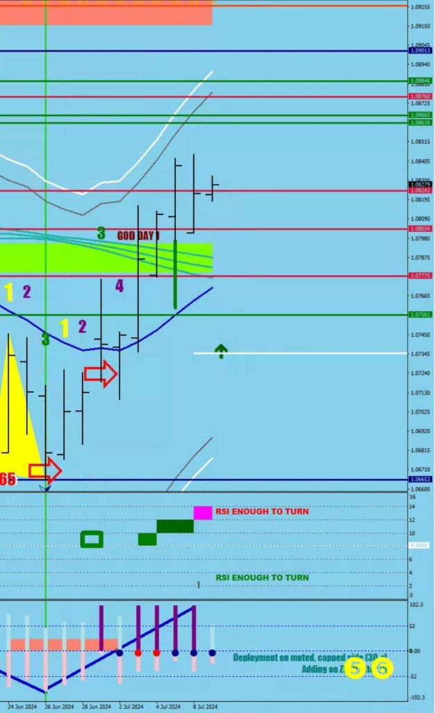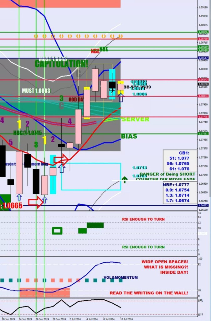 A final divergence was trampled over & now the price is back below the upper guard rail.