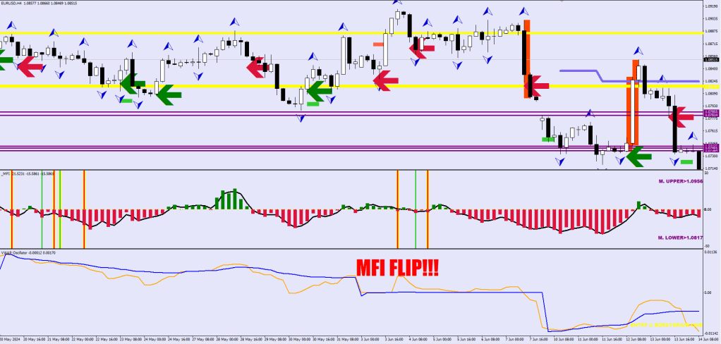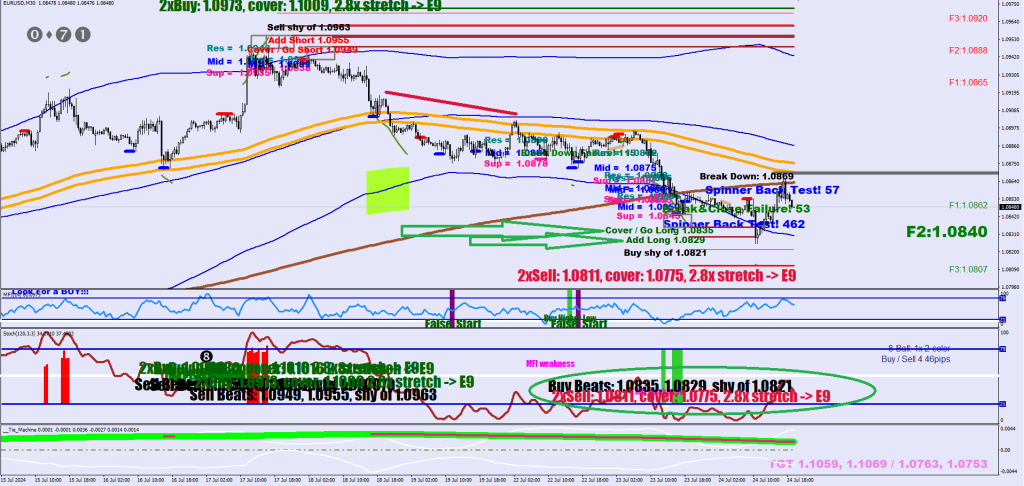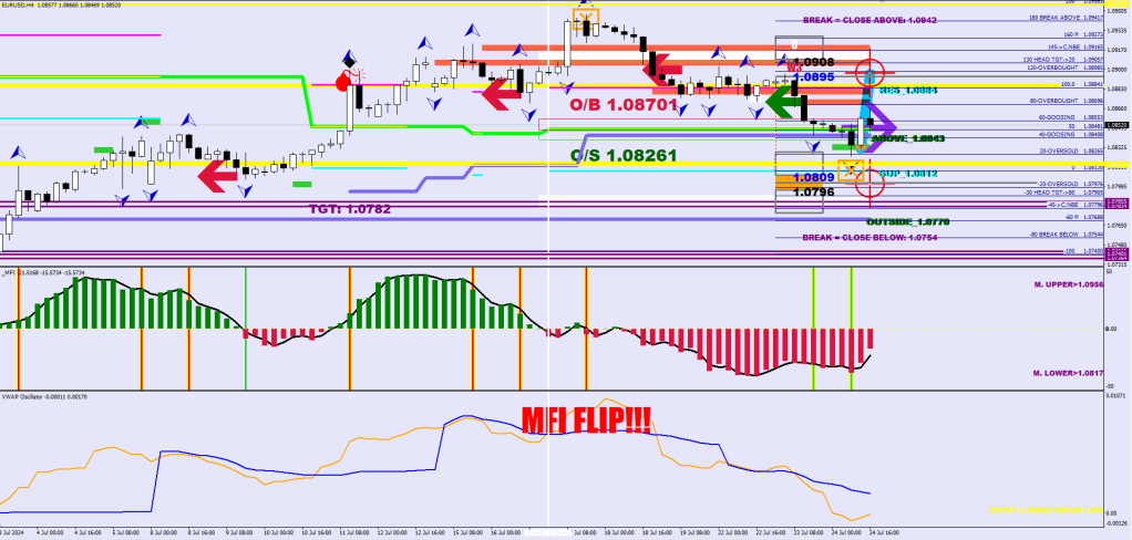 Now that we have utilized the money flow reversal zone, another control function can guide you in for holding longs to just shy of the 3rd hourly Fractal back. Only one reversal zone was printed and 1.0835 and 1.0829 were the projected buy levels.