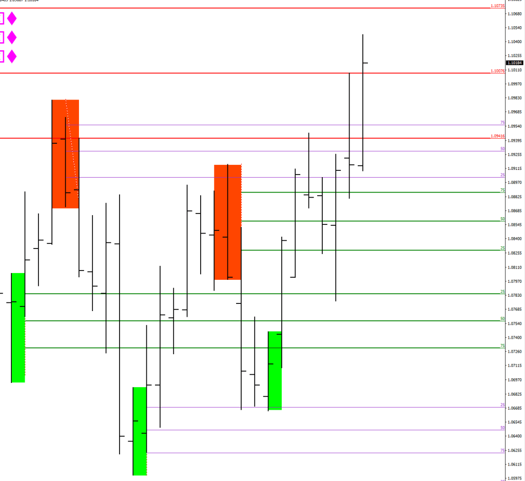 The current move should had started the contraction dance, but the SOB was broken to the upside (yellow-purple line at 1.10).