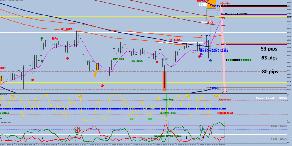 In the first image, you can see the 80-pip checkpoint, at 1.0791. Breaking that would clarify the intention of making that missing lower low. A typical beat would be 16 pips beyond the previous low, so around 1.0745.