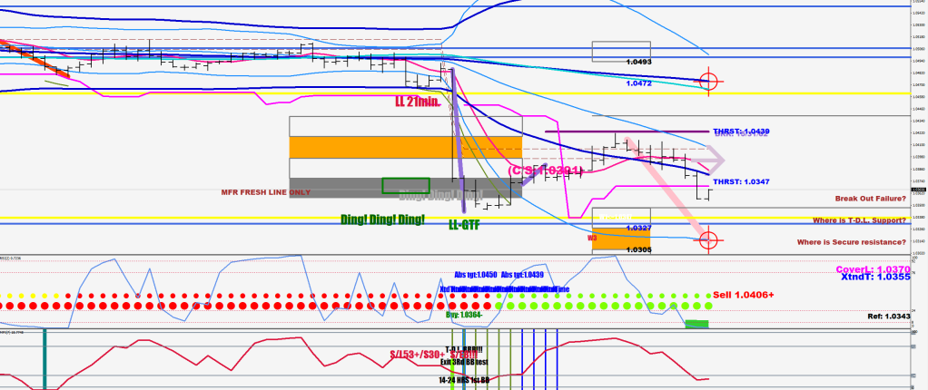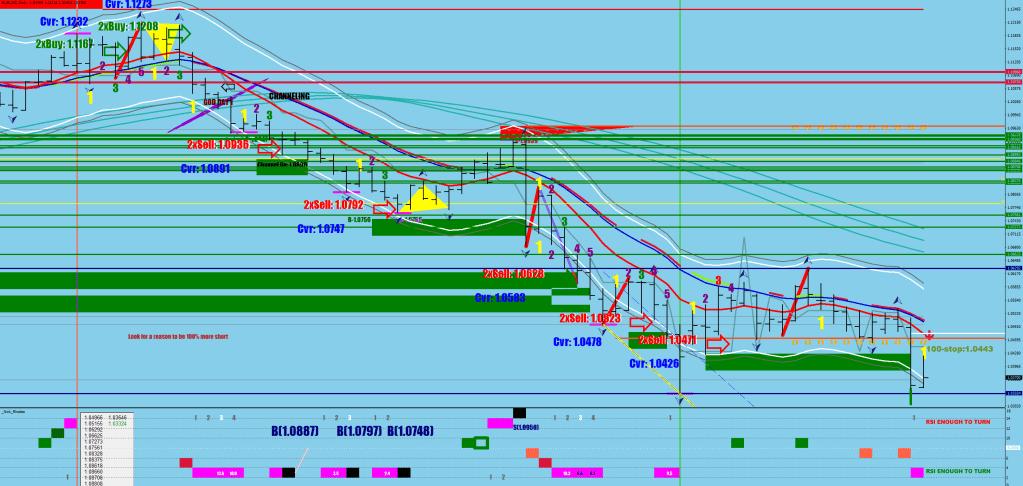 There could be a bow back bending the price back from the daily E-9 or a bit beyond (red line), these triangles (yellow) take 3 or 4 days to print, meaning a higher low near here on Tuesday, but a visit of 1.0460+ is very likely first.