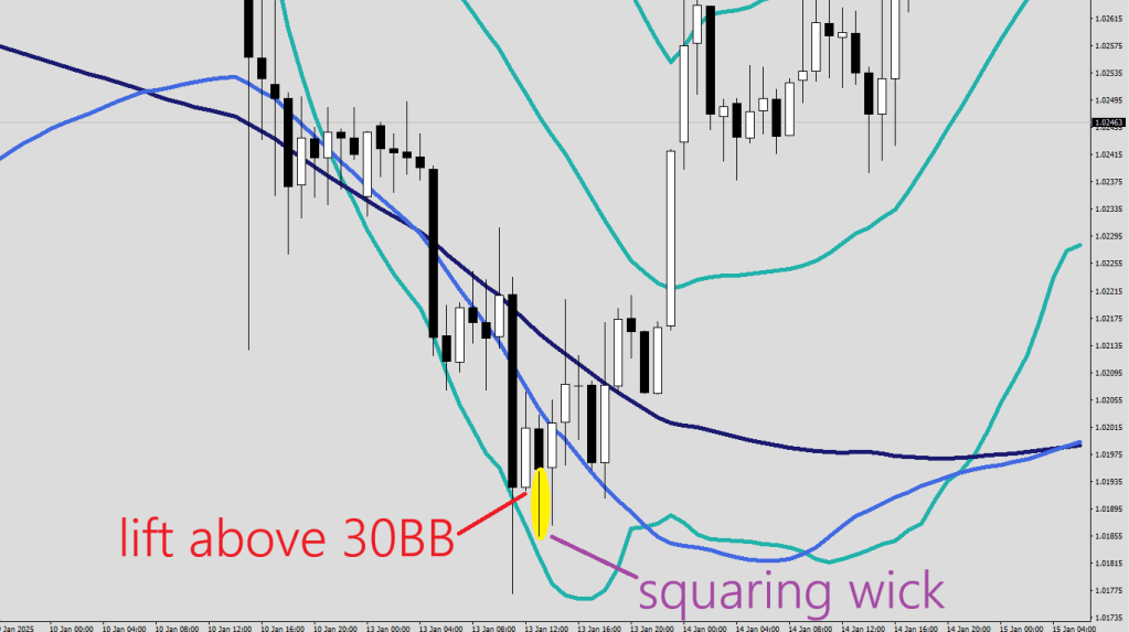 If you want some help from the market maker, keep an eye out for a “lift and square” move. The last low was squared like this:
