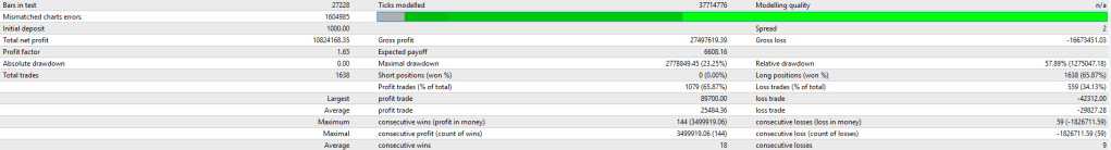 No clear winner here, the two routines have nothing to do with each other, yet they perform similarly. The W3 has less drawdown but opens twice as many positions. 13 million of course is more than 10.8 million.