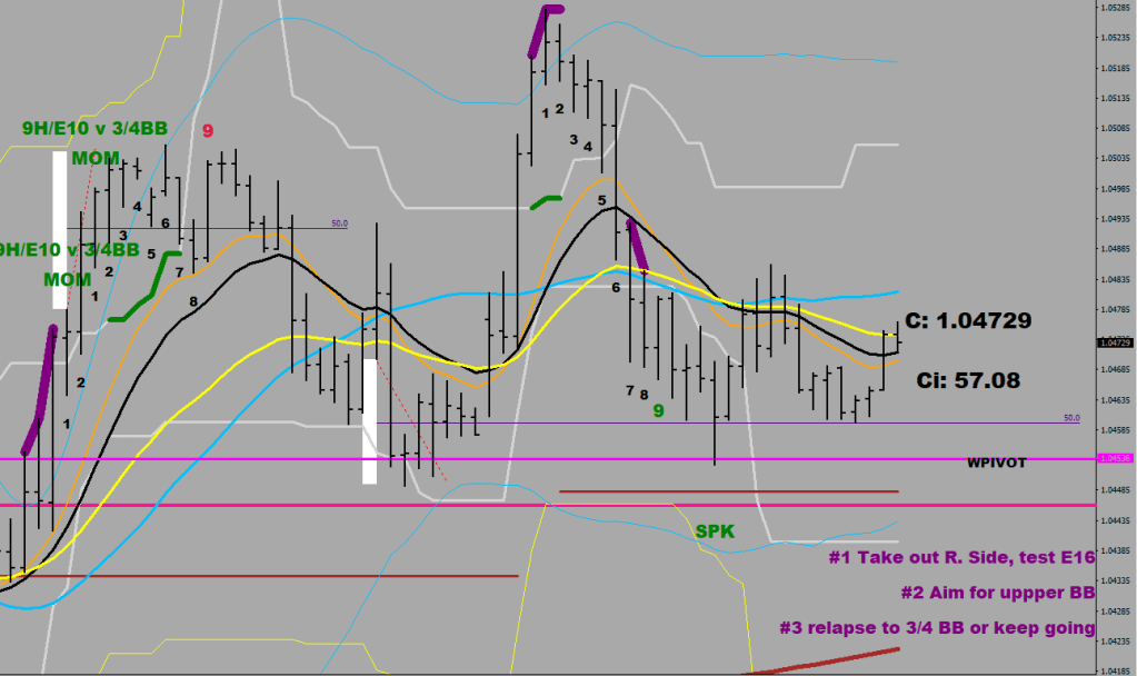 It would take a 20-pip move to find itself below the daily E-9 band (E-207 hourly, the two spring green lines above) and from then on… you could have a 9-12 days disconnect and keeping away.