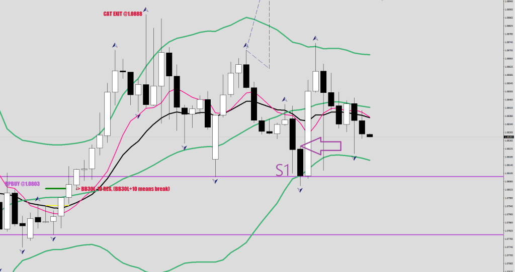 So, as projected, a new S1 was made by the lower BB, but no close below since.