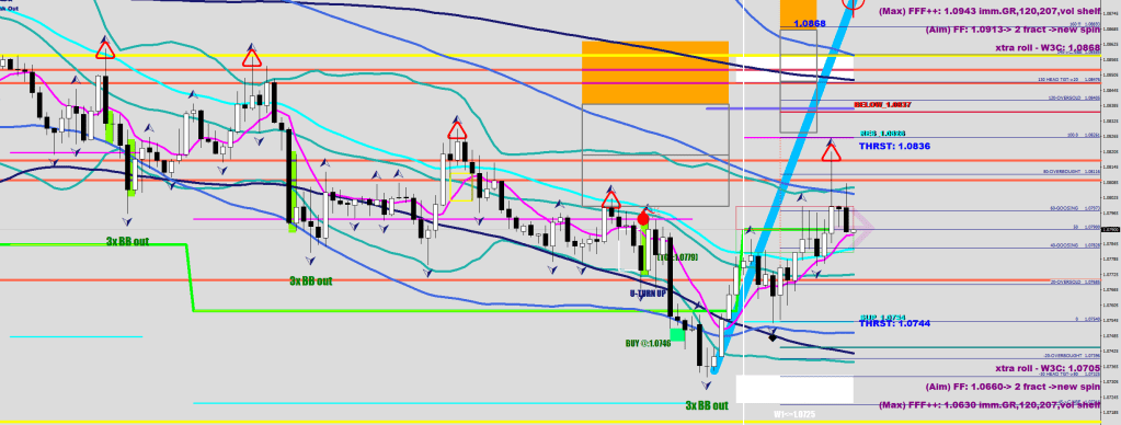 This current up move tagged the yellow trendline yet again. It was a bigger up move, because you had 3 of the outside all 3 BB fractals (ovals).