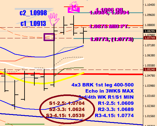 Once the market has made a Push and an Echo (Palm, House suggesting a return home) the minimum target would be the weekly S1 – 1.0704, before perhaps continuing with the next leg up.