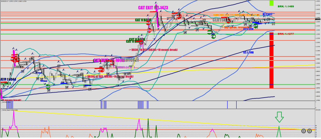 Although after 120 hours of rest, the 1.1473 is no longer safe, I do not think this would get there. The game would start at 1.1429 and could get within 10 pips of the break level, so 1.1457. Can’t narrow it further. That high should be the rest before returning below the daily E-9.