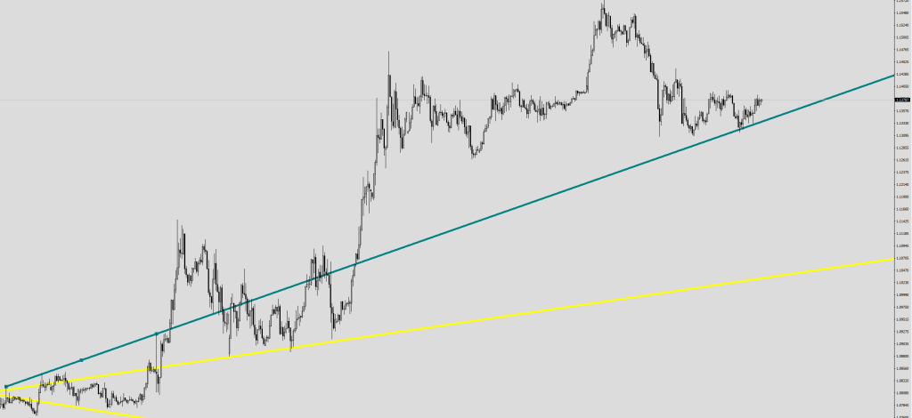 Now take a look at where we are, that teal trendline is the very defining low of this current uptrend, I left the connection points lit, so you can see where it started.