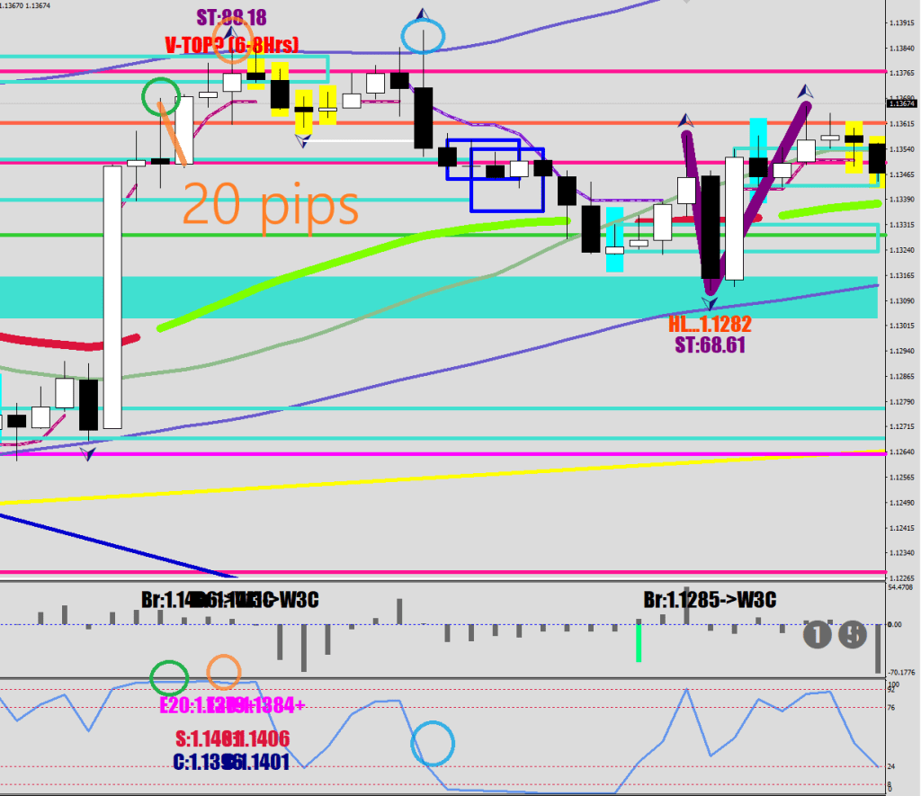The following, Adjustment high (orange) is expected to stay within 20 pips, and would see a pullback prior at a minimum 17 pips, but often 37, and can be as much as seventy-something.