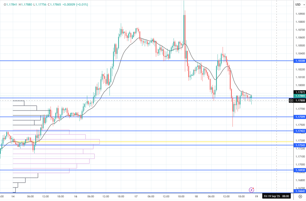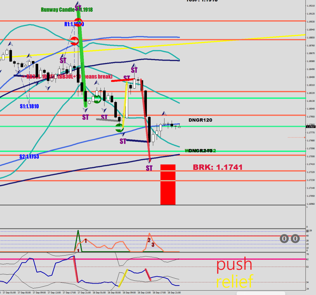 The small hint here is that there is no bounce back up happening, and the volatility breakout to the downside is a short breath away, still at 1.1741.