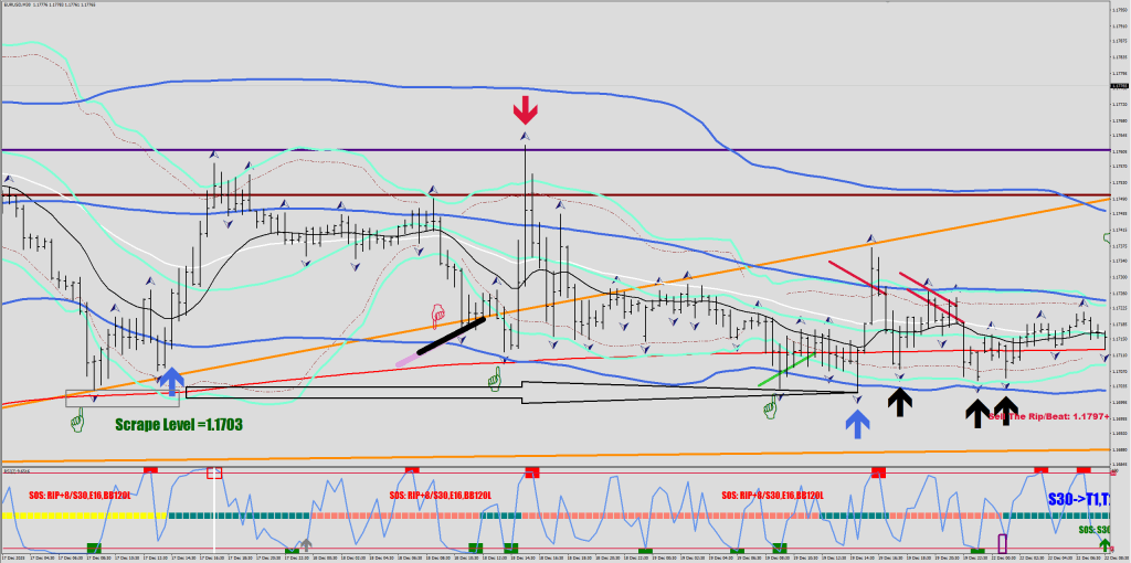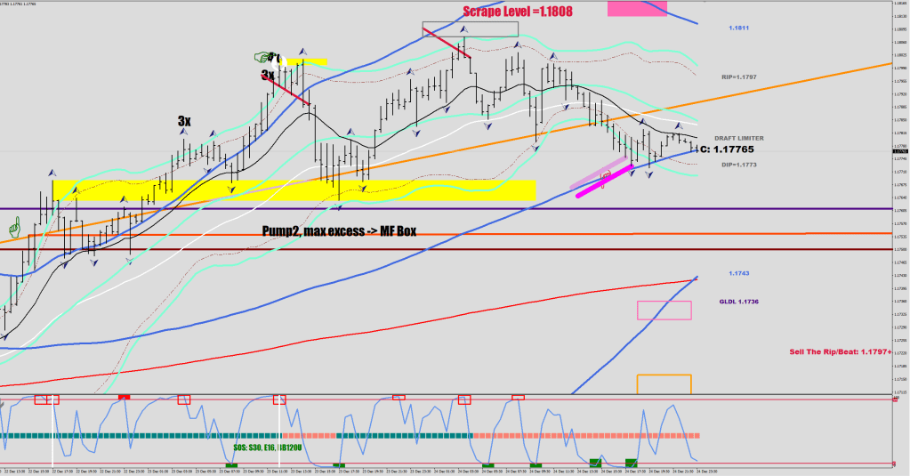 The important part here is the objective, a purely money flow-based filter. You can play away from this box with the knowledge that if it gets reversed, you would need to at least be hedged for another run. 5 pips out (1 pip past the box) sounds like a good place for that. The next run would be at a minimum of 30 pips from the scrape level based on current history.