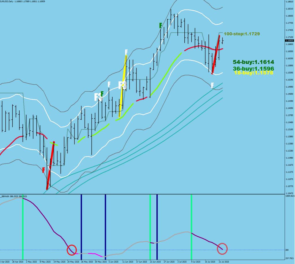 Despite the fact that when the large structure is over you would see a volatility whip (in white) that would usually tag the Bollinger band one more time (1.1848+ currently).