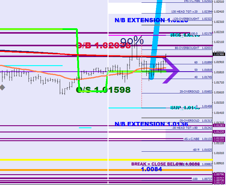 It displays a channel around the 36EMA (1H) based on zigzag crossbacks inside the channel and displays a projection at the other end that was made by a zigzag crossback at the other end with some additional displacement (slack) and projects this level out into the future (white dash). Invocation -> Channel Target.