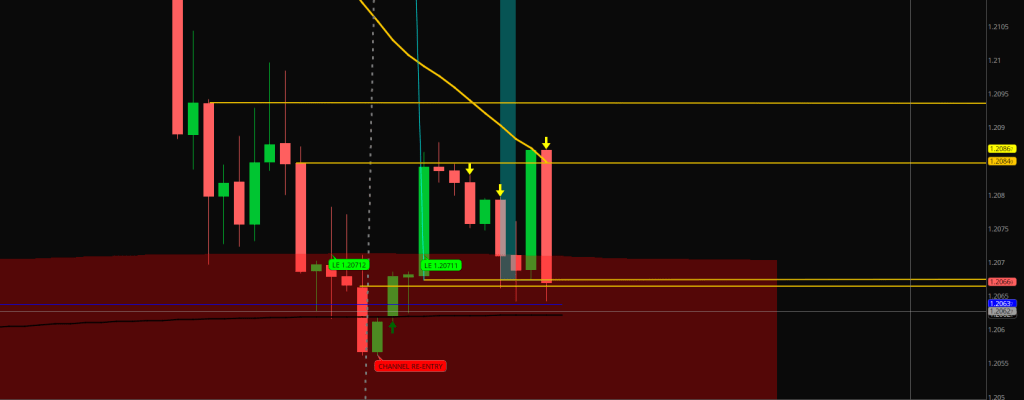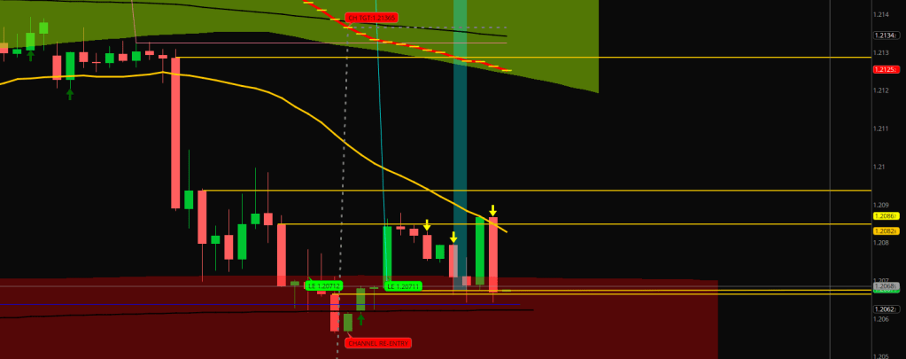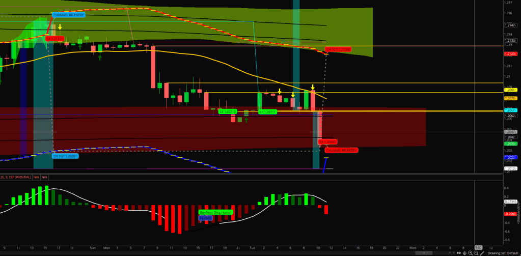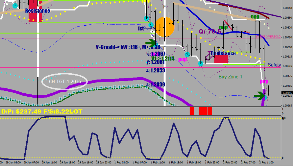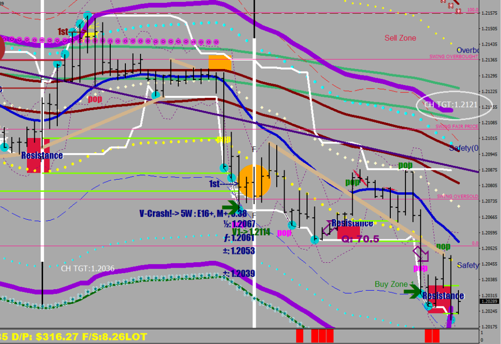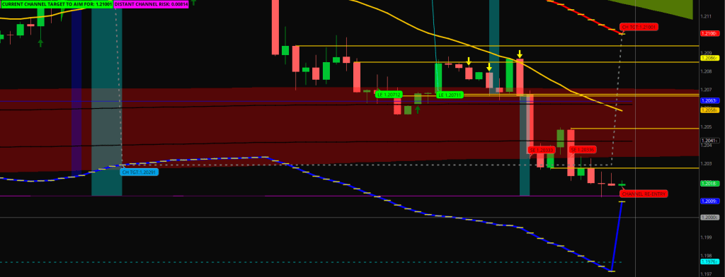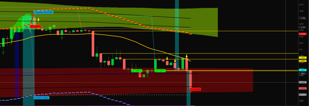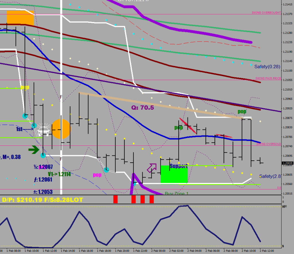 We just had another cascade down when the 3.8 Safety Shadow line got violated. There was a Taper that could have brought on a Send function, but hasn’t. The cascade continues until we see a serving from E-32 returned by the Safety line or the E-32 fails to hold 7 pips out.