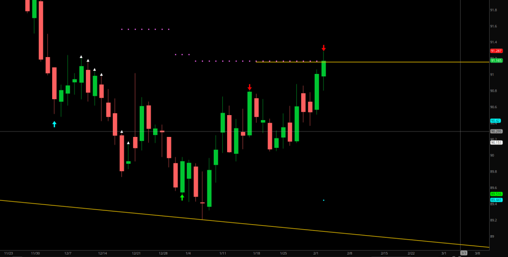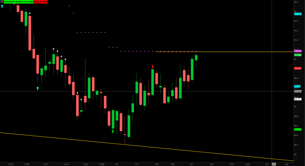 Also, if you look at the Extra deep correction call on the bottom (which not only did not get all the way down to the oversold, but fell shy from even the sound barrier), the “golden ticket” (lending the plot’s color) had a target of 0.45-0.49. This is a code for somewhere around the dashed blue line (E-16 stretch band aka 0.47).