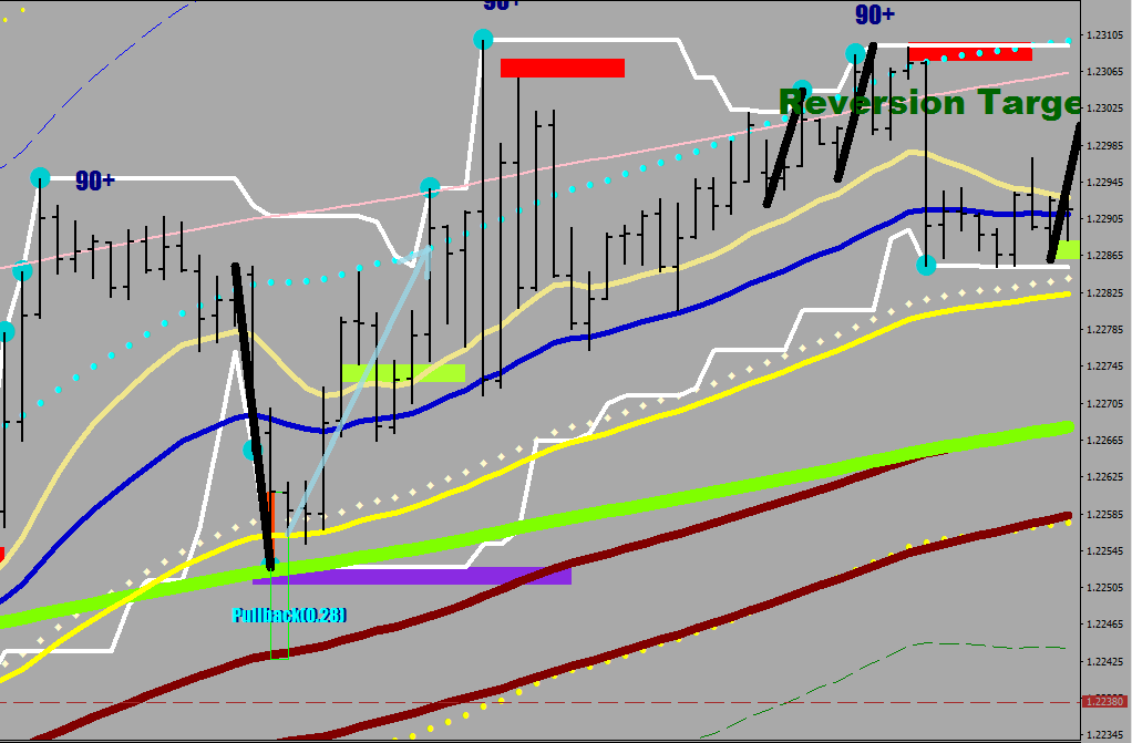 Aim for the safety lines – plug the target code in for the cropper: 0.28 for shorts, 2.8 for longs. With higher conviction you can plug in 0.38 / 3.8 for 10 pips extra. The Channel targets give you a good idea of what is possible / likely.