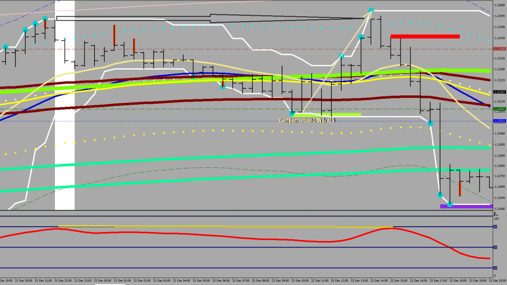 Now, what happened after the two on the left: there was a Maroon Fake-out with a flat nosed RSI print in the overbought. Let’s call it a single Zero (a possible start of a new wave).